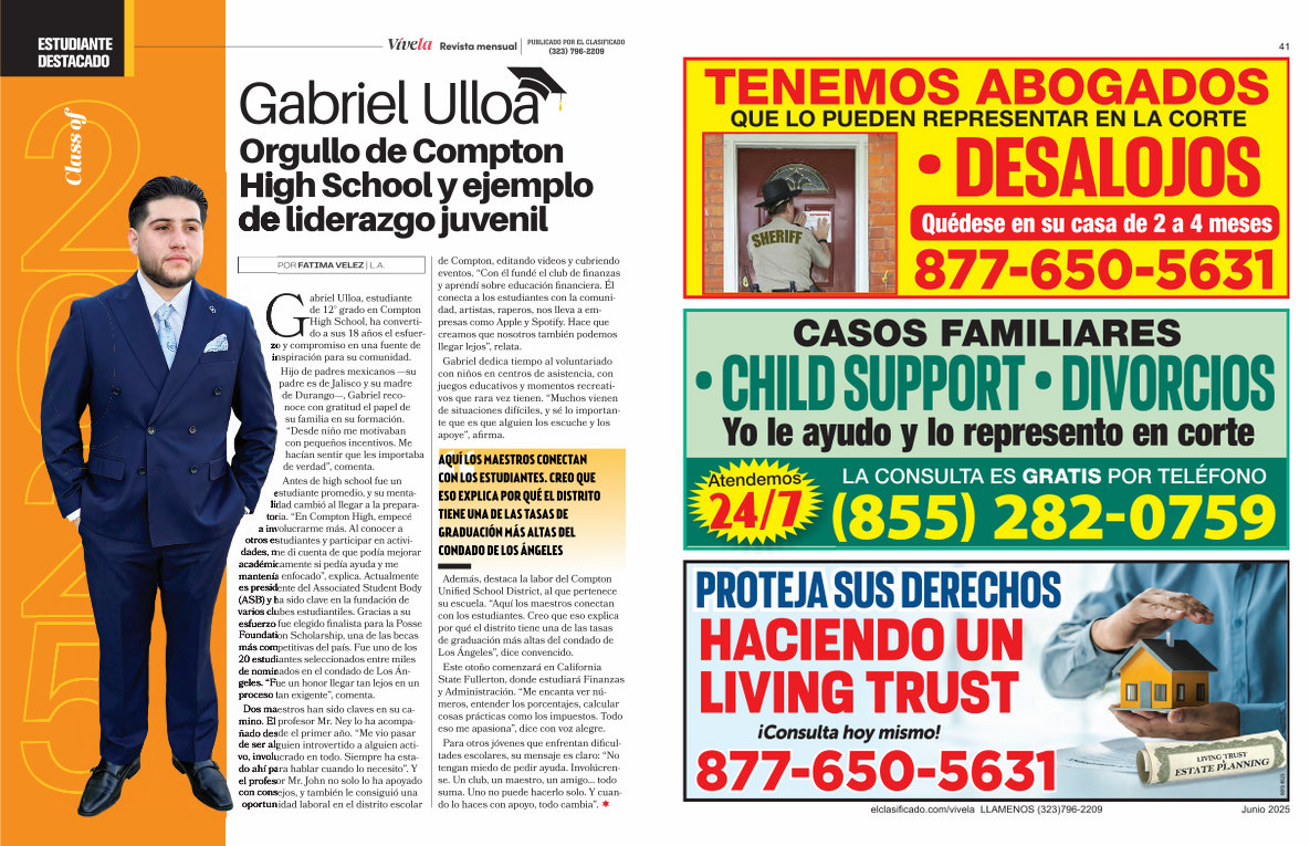 Gabriel Ulloa, estudiante de 12 ° grado en Compton High School, ha convertido a sus 18 años el esfuerzo y compromiso en una fuente de inspiración para su comunidad.