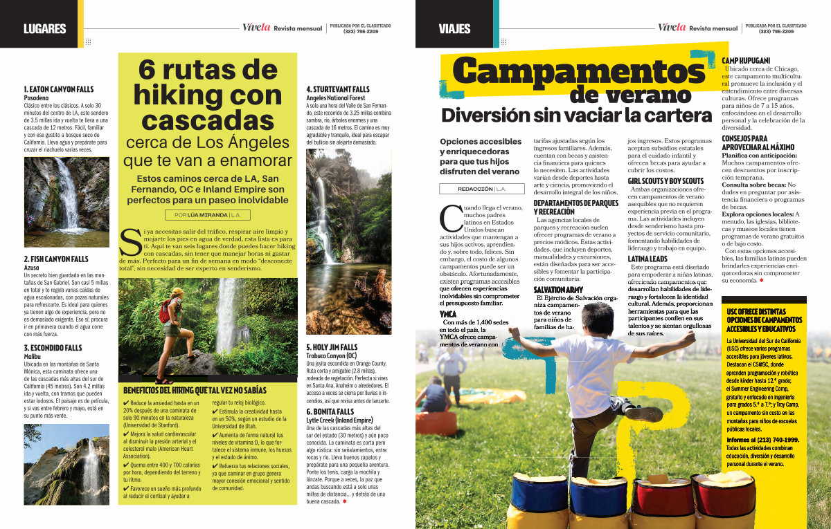 Azusa Un secreto bien guardado en las montañas de San Gabriel. Son casi 5 millas en total y te regala varias caídas de agua escalonadas, con pozas naturales para refrescarte. Es ideal para quienes ya tienen algo de experiencia, pero no es demasiado exigente. Eso sí, procura ir en primavera cuando el agua corre con más fuerza.