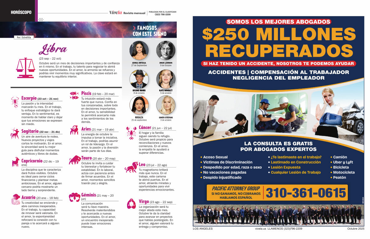 LOS ANGELES vivela. us LLAMENOS( 323) 796-2209 Octubre 2025