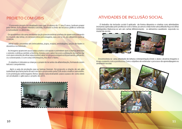 O trabalho de inclusão social é aplicado de forma dinamica e criativa com atividaddes inclusivas aplicadas pelo professor com o tema po amor a vida tome uma atitude.Faça escolhas inteligentes Elaborou-se um um cartaz diferenciando os alimentos saudáveis espondo no mural da escola.