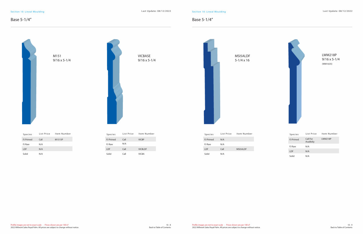 Profile images are not to exact scale- Prices shown are per 100 LF 2022 Millwork Sales Royal Palm. All prices are subject to change without notice.