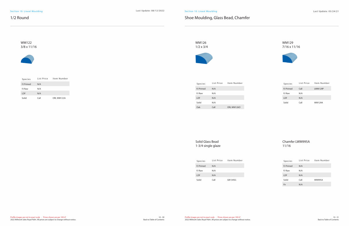 Profile images are not to exact scale- Prices shown are per 100 LF 2022 Millwork Sales Royal Palm. All prices are subject to change without notice.