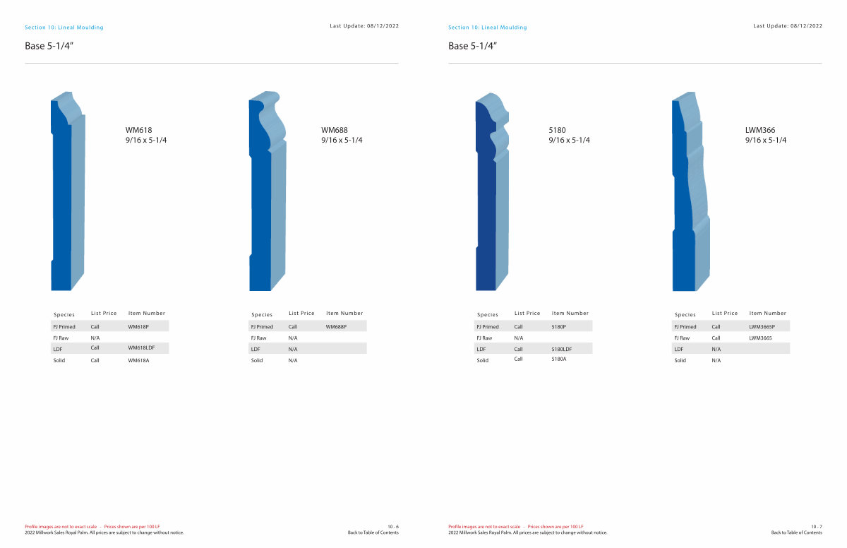 Profile images are not to exact scale- Prices shown are per 100 LF 2022 Millwork Sales Royal Palm. All prices are subject to change without notice.