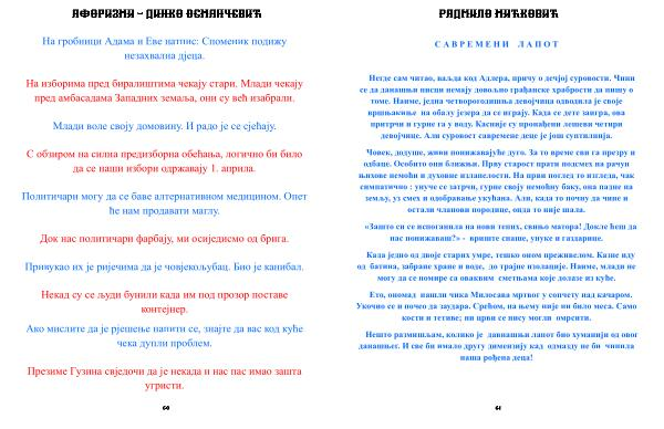 Нешто размишљам , колико је давнашњи лапот био хуманији од овог данашњег . И све би имало другу димензију кад одмазду не би чинила наша рођена деца !