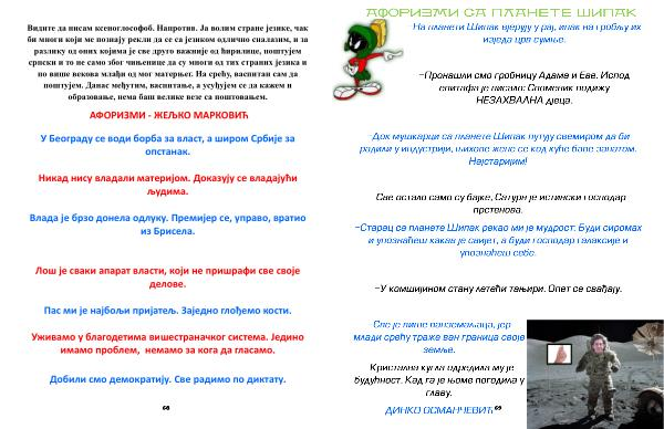 Видите да нисам ксеноглософоб . Напротив . Ја волим стране језике , чак би многи који ме познају рекли да се са језиком одлично сналазим , и за разлику од оних којима је све друго важније од ћирилице , поштујем српски и то не само због чињенице да су многи од тих страних језика и по више векова млађи од мог матерњег . На срећу , васпитан сам да поштујем . Данас међутим , васпитање , а усуђујем се да кажем и образовање , нема баш велике везе са поштовањем .