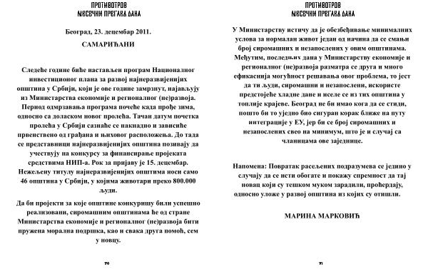 Следеће године биће настављен програм Националног инвестиционог плана за развој најнеразвијенијих општина у Србији , који је ове године замрзнут , најављују из Министарства економије и регионалног ( не ) развоја . Период одмрзавања програма почеће када прође зима , односно са доласком новог пролећа . Тачан датум почетка пролећа у Србији сазнаће се накнадно и зависиће првенствено од грађана и њиховог расположења . До тада се представници најнеразвијенијих општина позивају да учествују на конкурсу за финансирање пројеката средствима НИП-а . Рок за пријаву је 15 . децембар . Нежељену титулу најнеразвијенијих општима носи само 46 општина у Србији , у којима животари преко 800.000 људи .