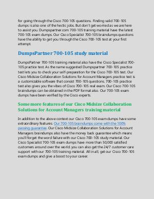 to assist you. Dumpspartner.com 700-105 training material have the latest