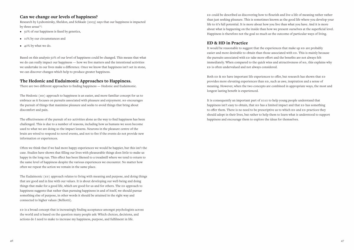The Hedonic and Eudaimonic Approaches to Happiness .