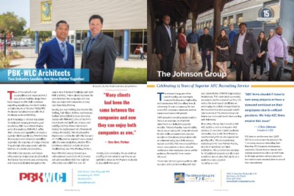 The Johnson Group , one of the nation ’ s leading and most highly respected Architecture , Engineering and Construction ( AEC ) recruiting firms , is celebrating 15 years in business . The firm serves AEC companies nationwide and has experienced exponential growth .