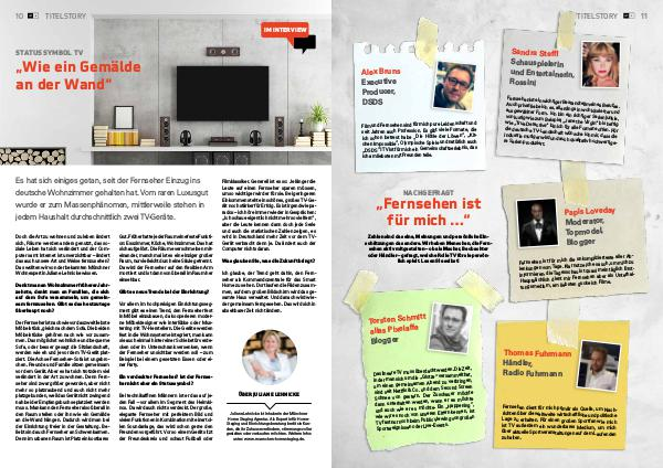 Zahlen sind das eine, Meinungen und persönliche Einschätzungen das andere. Wir haben Menschen, die Fernsehen aktiv mitgestalten – ob als Macher, Beobachter oder Händler – gefragt, welche Rolle TV für sie persönlich spielt. Lesen Sie selbst! Fernsehen ist für mich die unkomplizierteste aller Ablenkungen vom Tage. Klar nutze ich es auch, um mich zu informieren, die Tagesschau ist quasi mein täglich Brot. Hauptsächlich dient mir Fernsehen aber als Unterhaltungsmedium, am liebsten gucke ich Filme.