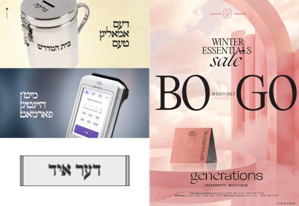 Visit Generations : Brooklyn 4601 16th Ave / 718-438-7204 Monsey 3 Morris Rd . / 845-352-1738 • Monroe 52 Bakertown Rd . / 845-783-6175