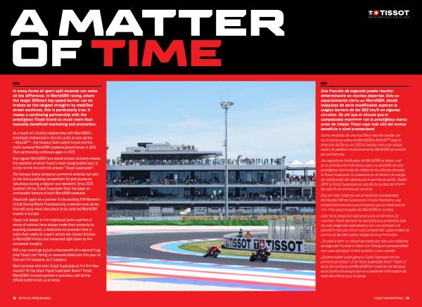 Una fracción de segundo puede resultar determinante en muchos deportes. Esto es especialmente cierto en WorldSBK, donde máquinas de serie modificadas superan la mágica barrera de los 300 km / h en algunos circuitos. De ahí que el vínculo que el campeonato mantiene con la prestigiosa marca suiza de relojes Tissot vaya más allá del mutuo beneficio a nivel promocional.