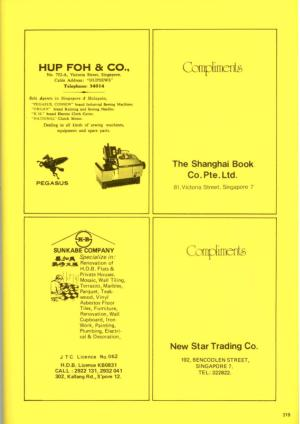 HUP FOH & CO ., No . 752-A , Victoria Street , Singapore . Cable Address : " HUPSEWS " Telephone : 34014