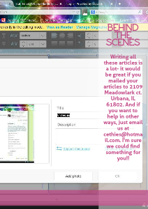 Writing all these articles is a lot- it would be great if you mailed your articles to 2109 Meadowlark ct. Urbana, IL 61802. And if you want to help in other ways, just email us at cethies@hotmail.com. I'm sure we could find something for you!!