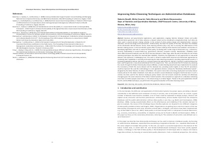 Abstract: Business and governmental applications, web applications, ongoing relations between citizens and public administrations generate a lot of data, whereas a relevant subset can be considered as longitudinal data. Such data are often used in several decision making activities in the context of active policies design and implementation, resource allocation, and service design and improvement. Unfortunately, the lower the quality of the data, the lower the reliability of the information derived thereon. Hence, data cleansing activities play a key role in ensuring the effectiveness of the decision making process. In the last decade a great effort has been made by both industrial and academic communities in developing algorithms and tools to assess the data quality, by dealing with a wide range of dimensions( e. g., consistency, accuracy, believability) in several fields( e. g., government, statistics, computer science). Nevertheless, scalability issues often affect theoretical methods since the size of real case datasets is often huge, while the lack of formality of a lot of data cleansing techniques may affect the cleansed data reliability. Therefore, the application of such approaches to real‐world domains still represents a challenging issue. This work is aimed to exploit both empirical and theoretical approaches by combining their capabilities in assessing and improving the data cleansing procedures, providing experimental results in a motivating application domain. We focus on a scenario where the well‐known ETL( Extract, Transform, Load) technique has been used to generate a new( cleansed) dataset from the original one. Then, we enhanced the ETL features by assessing the results through the Robust Data Quality Analysis( RDQA), a model‐checking‐based technique implemented to evaluate the consistency of both the source dataset and the cleansed one, providing useful insights on how the ETL procedures could be improved. We used this methodology to a real application domain, namely the " Mandatory Notification System ", designed by the Italian Ministry of Labour and Welfare. The system stores data concerning employment and active labour market policies for the Italian inhabitants. Such data are stored in several databases managed at territorial level. In such a context, the data used for the decision making by policy makers and civil servants should be carefully and effectively managed, given the social relevance of the labour market dynamics. We evaluated our approach on a database containing more than 5,5 million people career data, i. e. the citizens living in an Italian Region. Thanks to the joint exploitation of both the ETL and the RDQA techniques, we performed a fine‐grained evaluation of the data cleansing results.