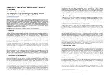 ThinkServices is a think tank on Services Science and Innovation that was created in 2008 by the Institute of Services Science of the University of Geneva and the Technology Foresight Office of the Canton of Geneva in Switzerland. The ThinkGroup Data, Society and Transparency( TG‐DST) was initiated in 2010 by ThinkServices and the Geneva data protection and transparency commissioners. This group brought together around 20 data protection and transparency experts as well as professionals and academics from various disciplines( law, management, information systems, graphic design, and human resources).