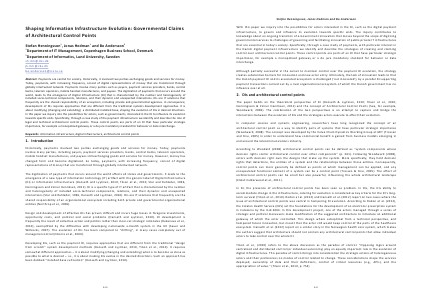 Abstract: Payments are central for society. Historically, it involved two parties exchanging goods and services for money. Today, payments, with increasing frequency, consist of digital representations of money that are transferred through globally intertwined network. Payments involve many parties such as payers, payment services providers, banks, central banks, telecom operators, mobile handset manufactures, and payees. The digitization of payments that occurs around the world, leads to the emergence of Digital Infrastructure( DI) that is characterized by the number and heterogeneity of included socio‐technical components, relations, and their dynamic and unexpected interactions. DIs are IT solutions that frequently are the shared responsibility of an ecosystem, including private and governmental agencies. In consequence, development of DIs requires approaches that are different from the traditional systems development approaches. It is about modifying( changing and extending) a distributed installed base, shaping the evolution of DIs in desired directions. In this paper we inquiry into the possibilities for actors, such as governments, interested in the DI to influence its evolution towards specific ends. Specifically, through a case study of the payment infrastructure we identify and describe the role of legal and technical architectural control points. These control points are parts of an DI that have particular strategic importance, for example a monopolized gateway or a de jure mandatory standard for behavior or data interchange.