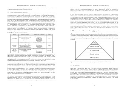 In doing comparison analysis, when we try to map Lutchen’ s model to the local context, it does not have sufficient layers to represent e‐Government initiatives completely thus it will need to be extended in order to suit our needs. For the other models, although Weill’ s shares some similarities with Lutchen’ s in terms of the representation of levels and perspective used, it differs in the arrangement of layers. Most e‐Government applications under scrutiny are segregated explicitly where different types of application are designed for different types of user, which also means each layer has different accessibility privileges. Thus, if we were to adapt Weill’ s model to trace e‐Government growth, it will not be suitable because this model has two dimensions sharing a common layer. We also found that Koh and Balthazard’ s model do not have the right view for us to extend to a supply‐side model. It is also not comprehensive to trace all e‐Government initiatives since it is lacking the foundation of IT capabilities construct. Due to that reasons, we have chosen Lutchen’ s model as the basis of our representation and adapted it to address the mentioned limitations and to suit the local context.