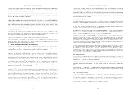 The third class, framed by Article 21( 2) CAD, is the one comprising digital documents bearing an advanced, qualified, or digital electronic signature, and created in compliance with the technical rules referred to in Article 20( 3) CAD, and whose purpose is to ensure that the author can be identified and that the document preserves its integrity and inalterability. Any digital document that satisfies these conditions is recognized in the law as having full probative force pursuant to Article 2702 of the Italian Civil Code. With this class of documents, the use of a signature‐creating device is assumed to be ascribable to the owner of the device unless that person can prove otherwise.