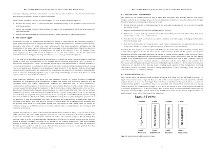 Here, we will adopt the maturity model presented by( Gotze et. al, 2009) that was discussed in section 2, In Egypt, the awareness level is high and that gives 0.5 point, be reviewing the achieved capabilities with the program director, it was clear that Egypt have only three capabilities at the level 1, there is a plan for implementation, generic EA guidelines have been provided, also stakeholders commitment was legally enforced because the prime minister of Egypt in 2010 issued the decree no. 856 concerning the commitment of ministries and government bodies to exchange data between them in accordance to the national plan on integration, accordingly Egypt gains 3 points in the establishment level, and the overall weight becomes 3.5 points. Figure 2 shows a simplified view of this assessment.