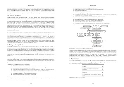 The Delphi method has been used in Information Systems research since the 1980 ' s( Päivärinta, Pekkola, & Moe, 2011). There are various approaches to conducting a Delphi study. Some researchers would commence by distributing an open‐ended questionnaire to a group of experts( Remenyi & Sutherland, 1993). However, in this study, the open‐ended questionnaire was not considered to be necessary since we conducted a literature review( Hsu & Sandford, 2007; Watson, 2008) and a brainstorming( Geist, 2010) session with four e‐ Government experts. The brainstorming session consisted of three Skype conference calls, several one‐on‐one Skype calls and e‐mails. Error! Reference source not found. 1 outlines the approach that was used for the Delphi study.