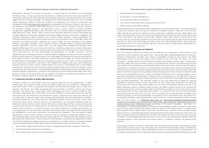 Electronic government is being implemented worldwide and in all levels of governance.“ Local authorities play a particularly important role, since they can identify the changing customers’ needs best of all”( Ancarini, 2005). Although the governance functions of those institutions in different countries slightly differ, their common goal remains the same, that is not only to make the governance itself more efficient, but also to make it more accessible for the public( Gronlund, 2002; Gugliota, Cabral, 2005). McKinsey research shows that“ some of the most cutting‐edge innovations have come from the developing world: governments that believe they have no choice but to take bold risks. Others have come from developed nations, which feel more pressure than ever to do more and better with less”. The next chapter is exploring the peculiarities of e‐ Government development in Lithuania.