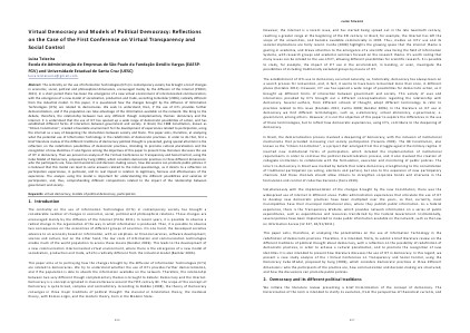 This paper aims, therefore, at analyzing the potentialities on the use of Information Technology in the redefinition of democratic practices. Therefore, it is intended, firstly, to submit a brief literature review on the different traditions of political thought about democracy, with a reflection on the possibility of redefinition of democratic practices, in order to achieve a cultural pluralization, and to promote the recognition of new identities. It is also intended to present how literature discusses the use of ICT in democracy. In this regard, we present a case study analysis of the I Virtual Conference on Transparency and Social Control, using the Democracy Cube Model, proposed by Fung( 2006), which considers democratic practices in three different dimensions: who the participants of the practice are, how communication and decision‐making are structured, and how the discussions can promote public policies.