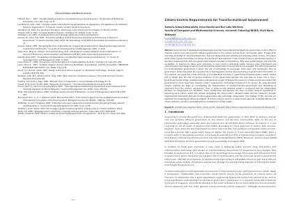 Abstract: Governments in developed and developing countries have implemented electronic government in their effort to improve internal cost and promote efficient governance to the citizens and business communities alike. Though most countries, including the least developed ones, now are having their own websites and providing online services, it has been proven that e‐government does not deliver the results as it was expected. From a research done in developing countries, it has been discovered that 35 % of e‐government projects resulted in total failures, 50 % were partial failures and only 15 % succeeded. In reaction to these poor outcomes, a new trend in delivering public services using information and communication technology known as Transformational Government( T‐Government) has emerged. The shift of perspective in transformational government is about the use of technology to encourage more open and transparent form of government, where the public has a greater role in forming policy and has improved access to government information. In this research, we argue that citizen‐centricity is a fundamental principle in t‐government implementation, where citizens will no longer play the role of passive recipients of the government services but may take an active role in the t‐ government service design, implementation and operation as part of democratic processes. Citizen‐centric also means that government is more responsive towards citizen’ s requirements and being transparent in its service. By using literature analysis method, we begin by investigating the characteristics of transformational government and identifying its constructs from the citizens’ perspective. Then, a citizen‐centric demand model is composed and the relationships between its components are identified. These relationships will become the basis to build research hypotheses in upcoming work. Future works also include integrating the citizen‐centric demand model into the research ' s broader requirements framework that will contains government and technology components. The findings of this research are significant for designing an effective program of citizen‐oriented services in government agencies. A guided definition of citizen‐centricity concept is expected with the establishment of the model.