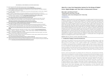 Abstract: For several years governments invested significant resources in the digital management of democratic processes. Furthermore, e‐government has moved away from the digitalization of document processes and decision‐making within the administration towards a new model that involves citizens in the co production and sharing of information. These processes require management of a large amounts of information, which raise questions about the protection of individuals and social control. Reputation could be the answer to many problems. People understand that the way they behave online will impact their ability to maintain an online presence as well as perform all sorts of transactions in the future. In the same way, citizens who help their local community would being recognized for the role they play in generating different kinds of wealth for society. A reliable system of“ civic reputation” is needed to foster collaboration but also for protecting individuals and avoid social control. In the past year, a plethora of reputation systems have been launched to serve as the connective tissue of reputation and trust across the web. But no one has risen as standard for use in e‐government process. This uncertainty prompts a number of key questions: it is possible to rank trustworthiness in the digital public sphere for e‐democracy processes? Will a single system of reputation work across multiple platforms? And what procedures are in place to ensure the accuracy of the reputation, the ability to address mistakes and the necessary acknowledgments to reward who is actively involved in civic engagement? This paper analyzes innovative practices in the evaluation of“ civic reputation” to support the participation of citizens in a reshaped public sphere, and suggests digital badges and a new badging framework as a solution to these problems.