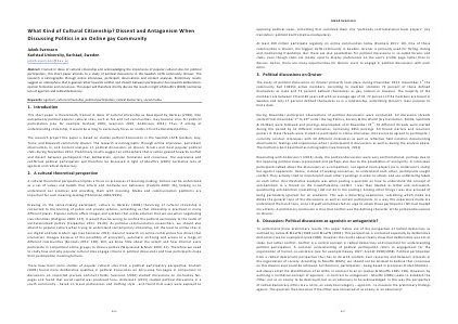 At least 100 million participate regularly on online communities today( Kozinets 2011: 10). One of these communities is Qruiser, the biggest LGTB community in Sweden. Qruiser is primarily used for flirting, dating and maintaining friendships. But there are also possibilities for political discussions in so‐called forums and clubs, even though clubs are mostly used to display preferences on the user ' s profile page rather than to discuss. Hence, there are many opportunities for Qruiser users to engage in political discussions with each other.