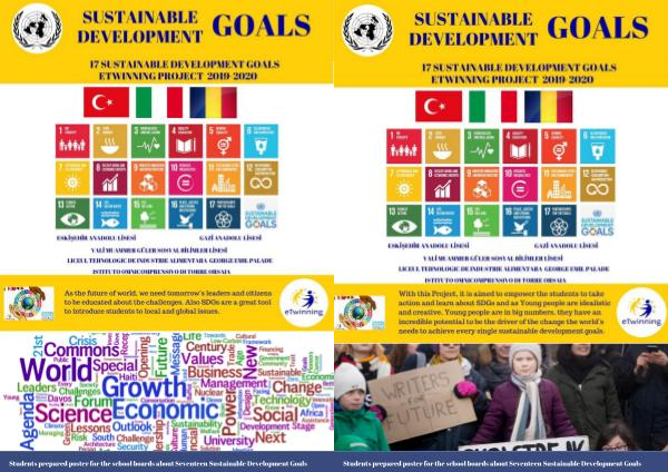 Students prepared poster for the school boards about Seventeen Susta nable Development Goals