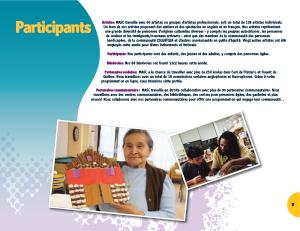 Artistes : MASC travaille avec 60 artistes ou groupes d ' artistes professionnels , soit un total de 138 artistes individuels . Un tiers de nos artistes proposent des ateliers et des spectacles en anglais et en français . Nos artistes représentent une grande diversité de personnes d ' origines culturelles diverses - y compris les peuples autochtones , les personnes de couleur et les immigrants / nouveaux arrivants - ainsi que des membres de la communauté des personnes handicapées , de la communauté 2SLGBTQIA et d ' autres communautés en quête d ' équité . Vingt autres artistes ont été employés cette année pour divers événements et festivals .