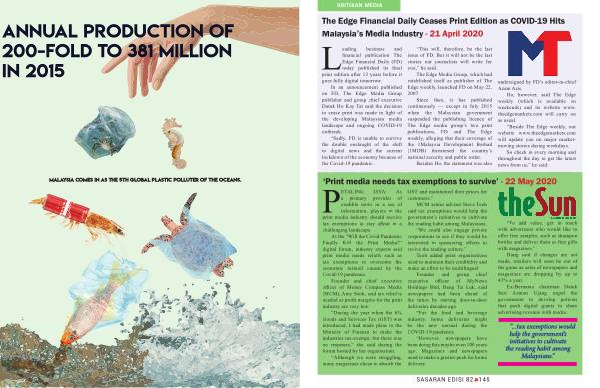 annual production of 200-fold to 381 million in 2015 Malaysia comes in as the 5th global plastic polluter of the oceans.