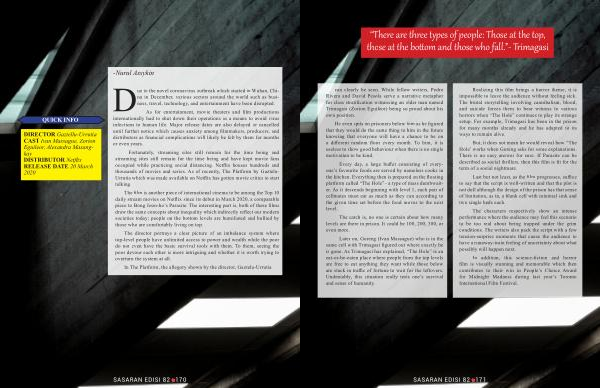 In The Platform, the allegory shown by the director, Gaztelu-Urrutia