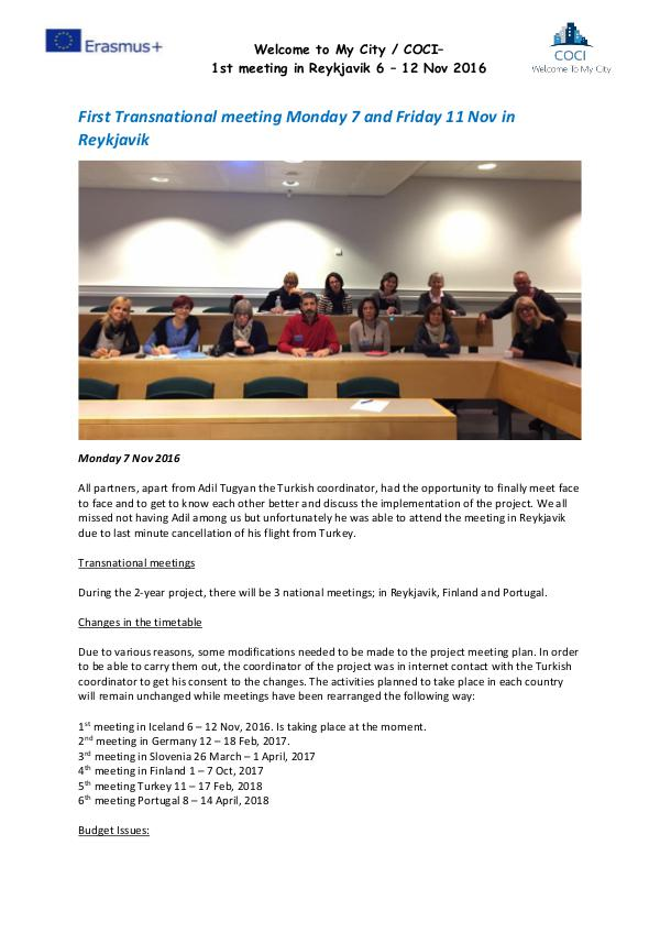 First Transnational meeting Monday 7 and Friday 11 Nov in