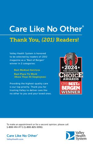 Valley Health System is honored to be selected by readers of ( 201 ) magazine as a “ Best of Bergen ” winner in 2categories :