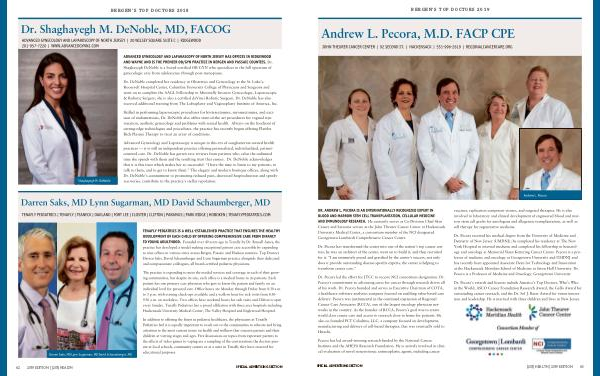 BERGEN’S TOP DOCTORS 2018 62 2019 EDITION | (201) HEALTH SPECIAL ADVERTISING SECTION