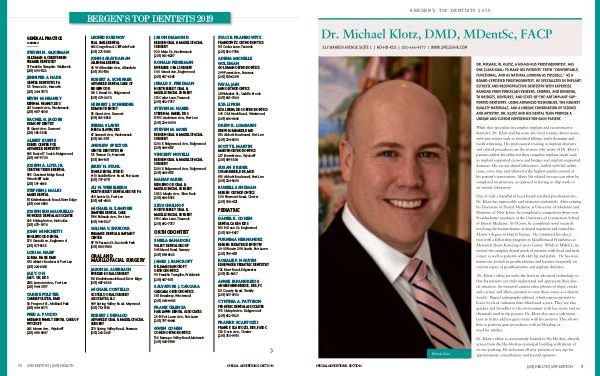 BERGEN’S TOP DENTISTS 2019 SPECIAL ADVERTISING SECTION (201) HEALTH | 2019 EDITION 71