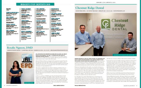 BERGEN’S TOP DENTISTS 2019 SPECIAL ADVERTISING SECTION (201) HEALTH | 2019 EDITION 73