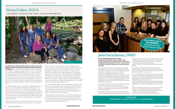 BERGEN’S TOP DENTISTS 2019 80 2019 EDITION | (201) HEALTH SPECIAL ADVERTISING SECTION