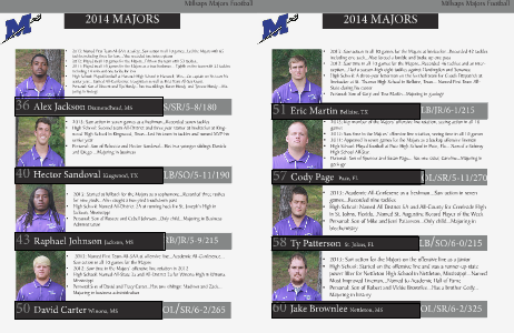 • 2013: Saw action in all 10 games for the Majors at linebacker...Recorded 42 tackles