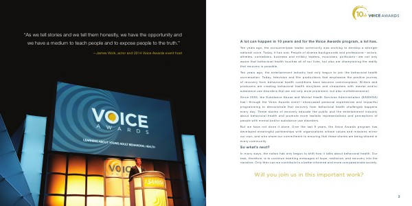 But we have not done it alone. Over the last 9 years, the Voice Awards program has