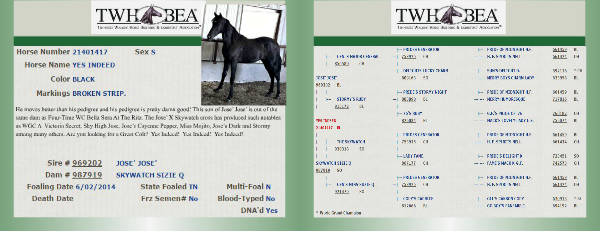 same dam as Four-Time WC Bella Sera At The Ritz. The Jose’ X Skywatch cross has produced such notables