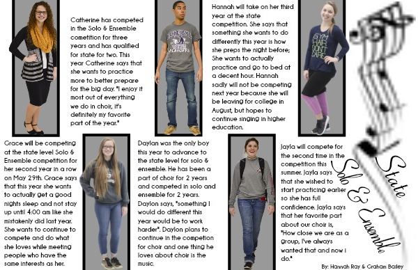 Catherine has competed in the Solo & Ensemble cometition for three years and has qualified for state for two. This year Catherine says that she wants to practice more to better prepare for the big day. "I enjoy it most out of everything we do in choir, it's definitely my favorite part of the year."