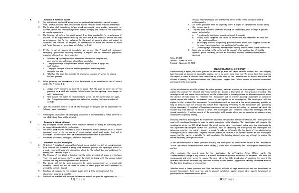 7. All school personnel shall be especially alert to signs of contemplated suicide among the victim’ s peers.