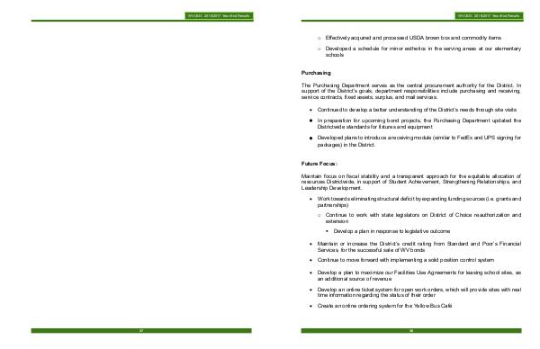 • Maintain or increase the District’ s credit rating from Standard and Poor’ s Financial Services, for the successful sale of WV bonds