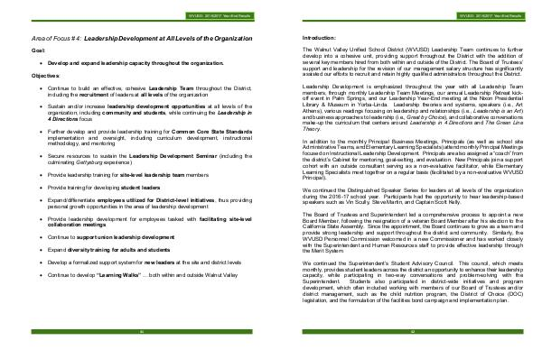 • Continue to build an effective, cohesive Leadership Team throughout the District,