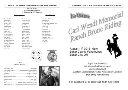 PAGE 14 2016 BAKER COUNTY FAIR OFFICIAL PREMIUM BOOK