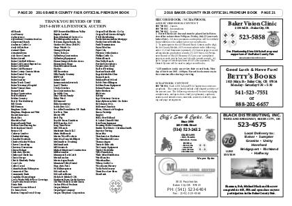 PAGE 20 2016 BAKER COUNTY FAIR OFFICIAL PREMIUM BOOK