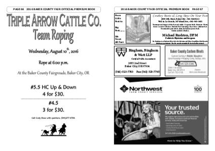 PAGE 66 2016 BAKER COUNTY FAIR OFFICIAL PREMIUM BOOK